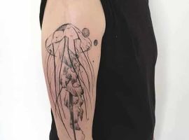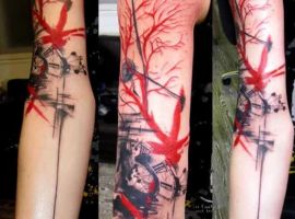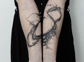 Маленькие символы на запястье, на кисти, на щиколотке или крупные абстракции на ноге и спине выглядят свежо и оригинально. Они не похожи на выверенные до миллиметра эскизы. Это скорее мазки кисти художника, только вместо холста кожа. Стиль абстракционизм популярен у творческих ценителей татуировок, не прячущих свою индивидуальность. Наши мастера салона Альянс в Киеве помогут Вам с созданием эскиза.