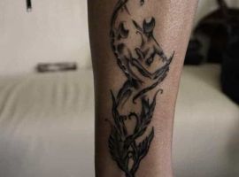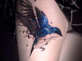 - Объёмный вариант требует большой ровной поверхности. Крупные рисунки хорошо смотрятся на спине, эффектны тату на плече. Можно сделать яркое тату на бедре, задействовав всю переднюю часть до колена. Вариант для самых смелых – тату рукав.