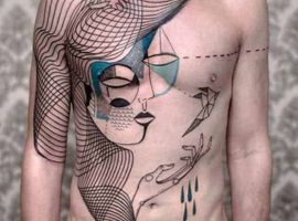 Абстрактная татуировка – яркий рисунок, приковывающий к себе взгляды. Это вариант для смелых решительных парней и девушек, не боящихся демонстрировать свою индивидуальность. В основе таких рисунков – художественное направление, противоположное реализму и базирующееся на изображении предметов вопреки общепринятым канонам рисования.