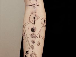 - Эффектность. Не важно, заложен ли в рисунке глубокий смысл или это просто беспорядочный набор фигур. Абстракция тату всегда выглядит стильно и ярко.