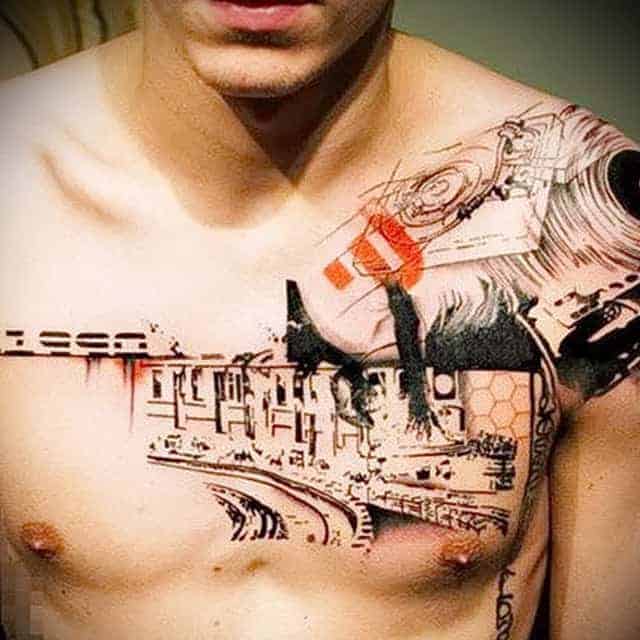 Мужчины могут дать волю фантазии и выразить через нательный узор своё мировоззрение, отношение к жизни. Эффектно смотрятся рисунки, где геометрические фигуры, штрихи и пятна сочетаются с узнаваемыми реальными предметами.