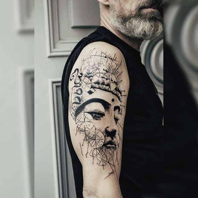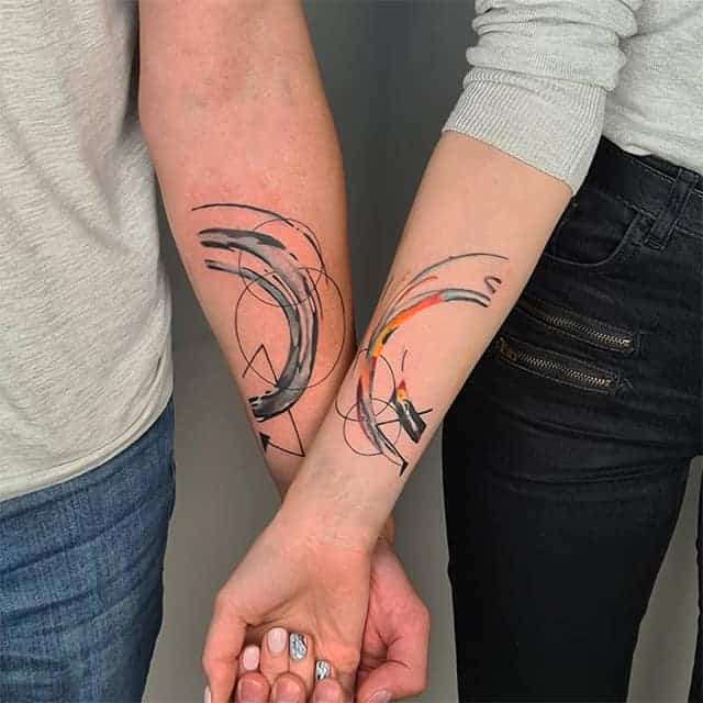 - Универсальность. Абстрактные тату выполняются в монохроме и в цвете. Можно подобрать брутальный вариант для мужчин или нежный для девушек.