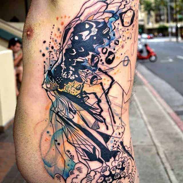 Стиль абстракционизм универсален. Каждый сможет подобрать вариант для своего тела. Вдохновение можно черпать из полотен известных художников. Многие переносят сюжет понравившейся картины на кожу. Получившееся тату абстракция для её владельца – своеобразная дань уважения творчеству, демонстрация любви к искусству.