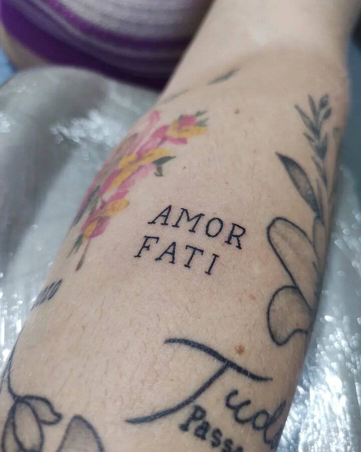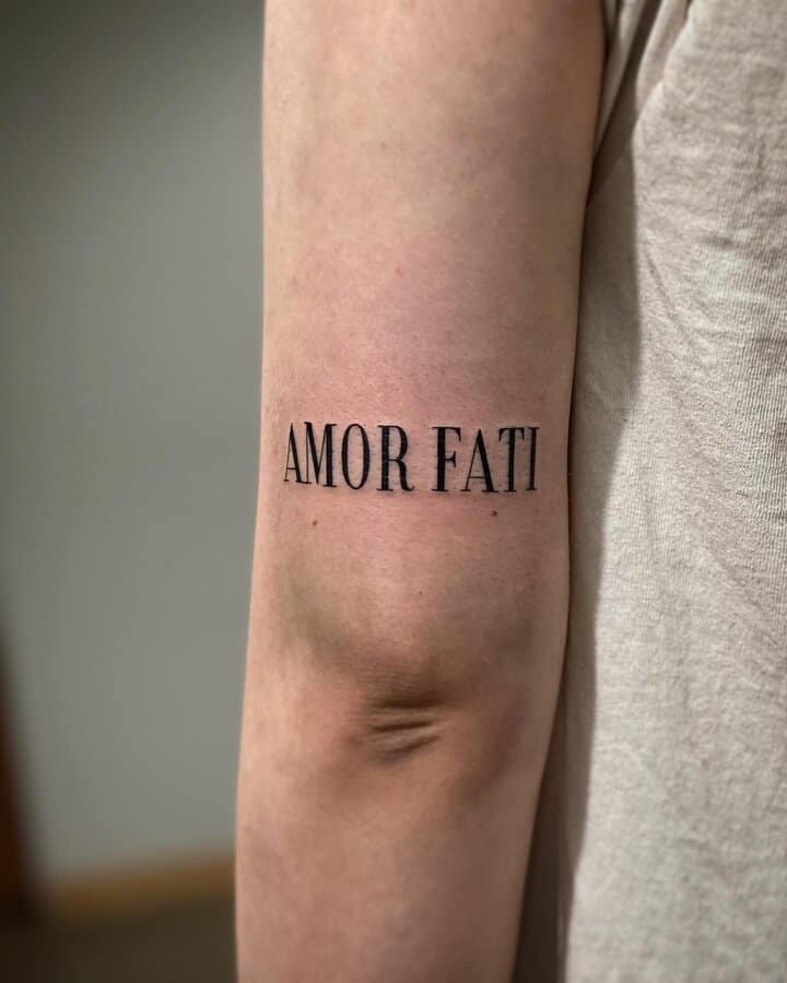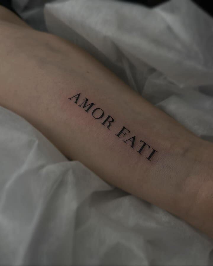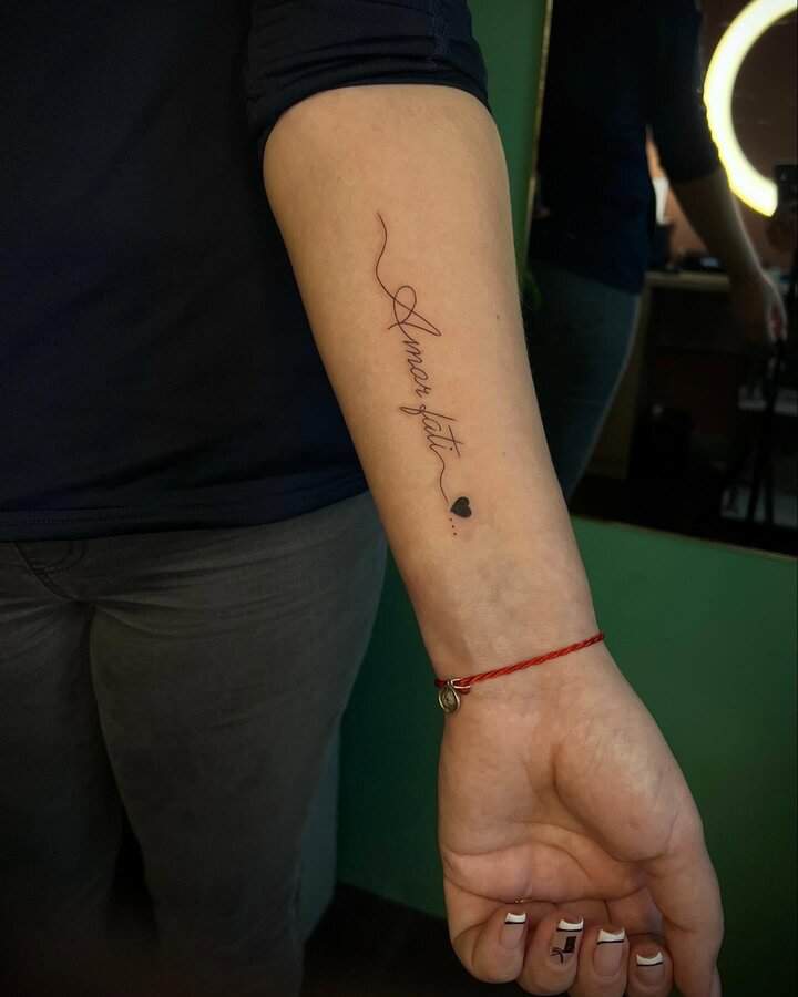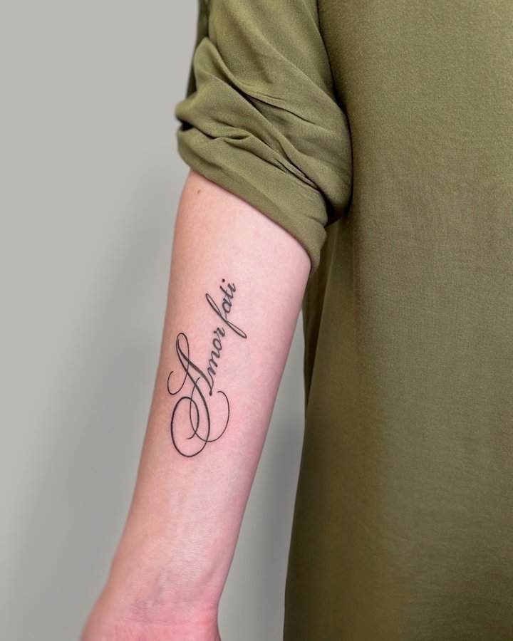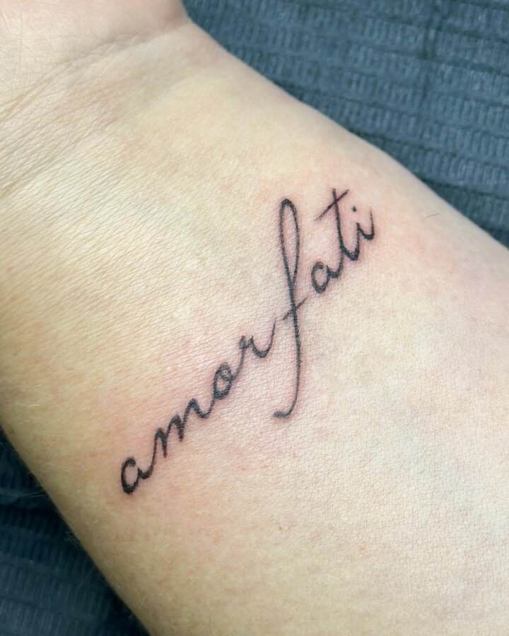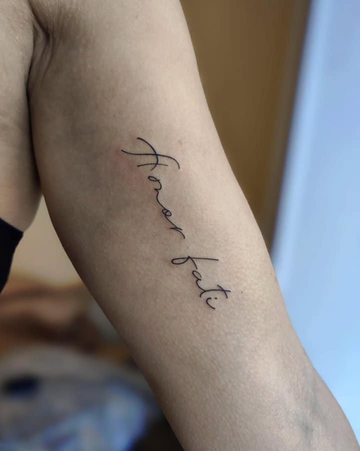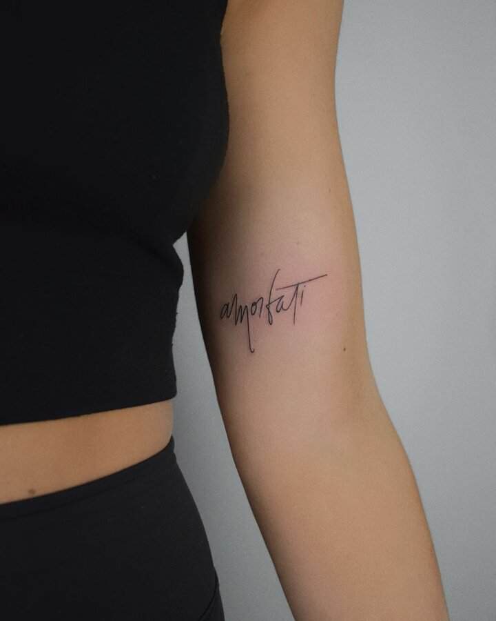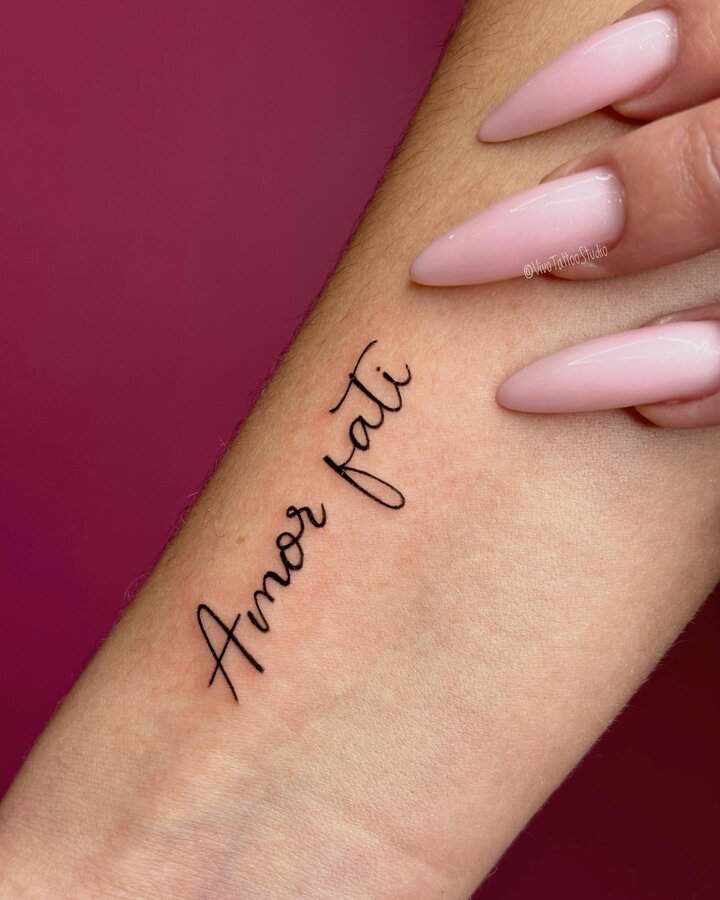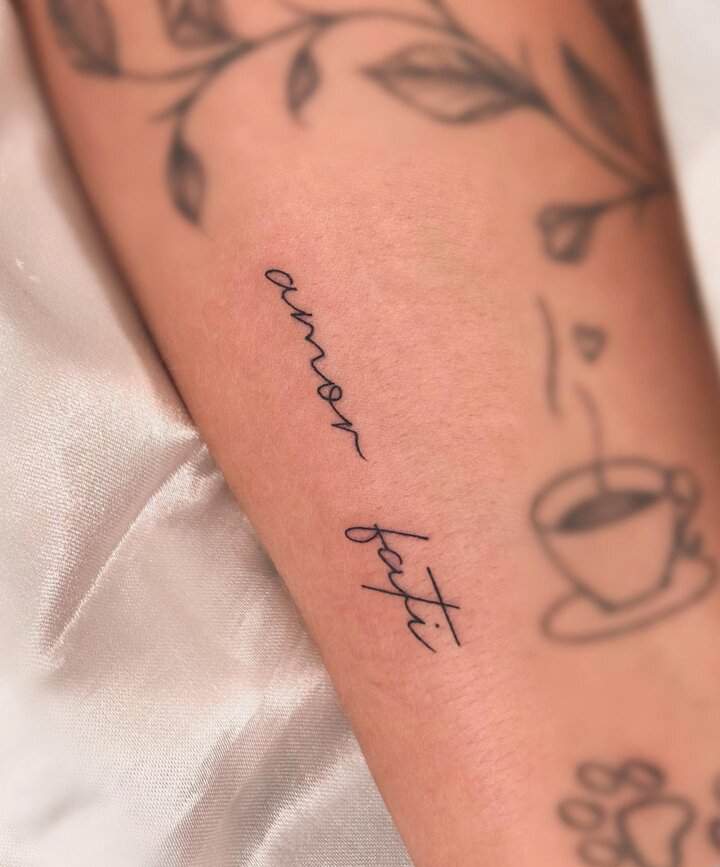 Посмотрите галерею с фотопримерами надписи amor fati тату