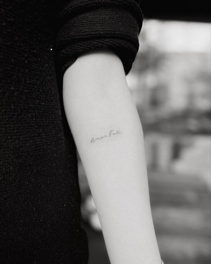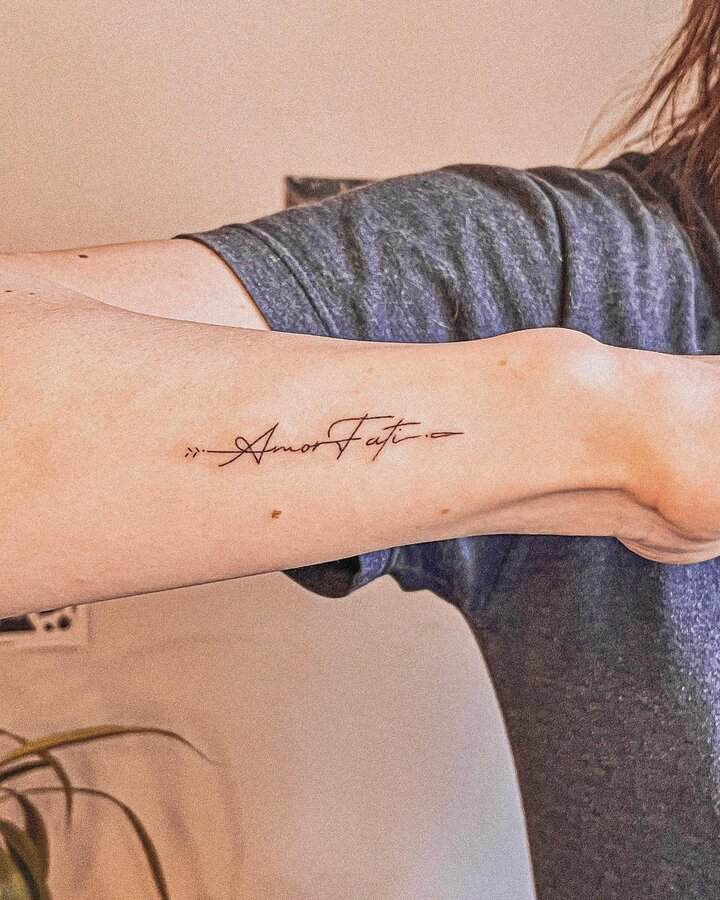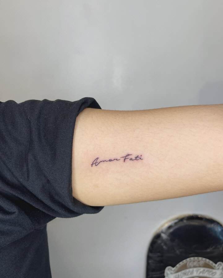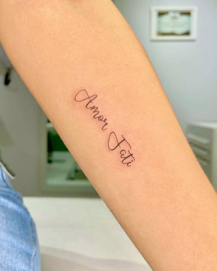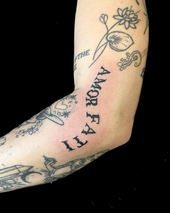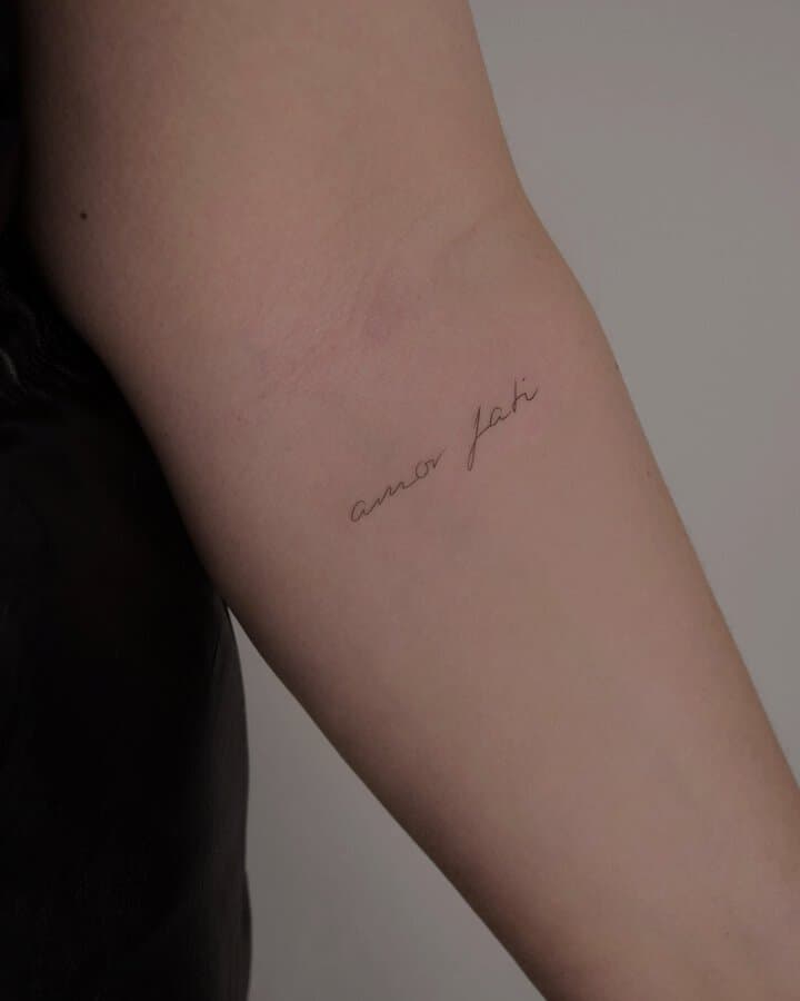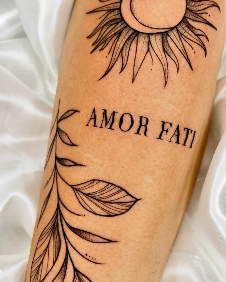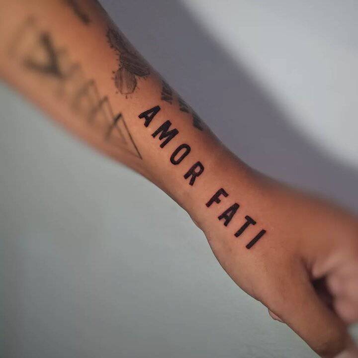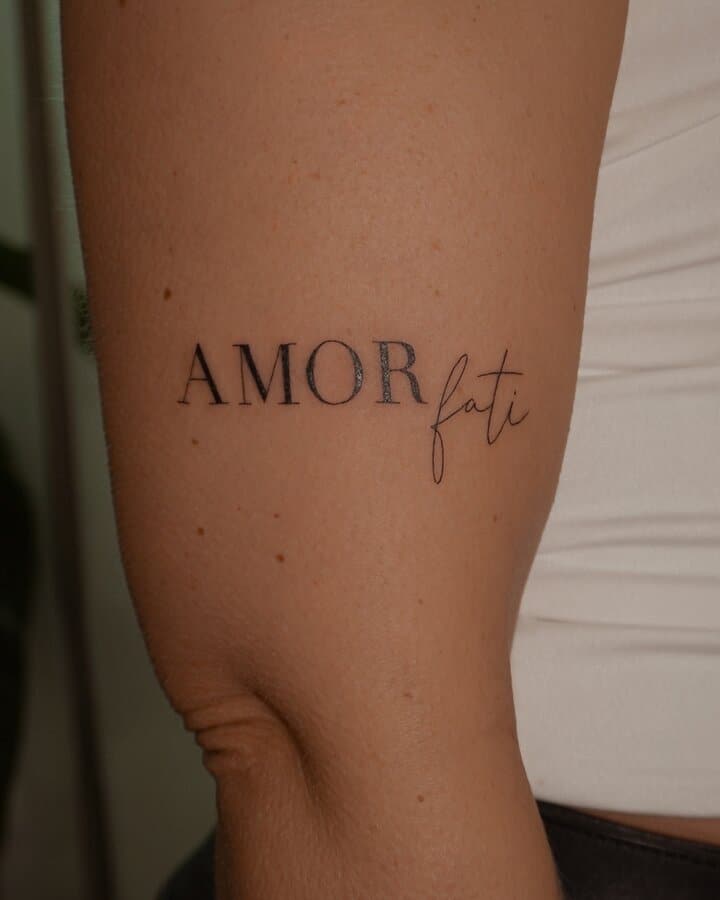 Посмотрите галерею с фотопримерами надписи amor fati тату