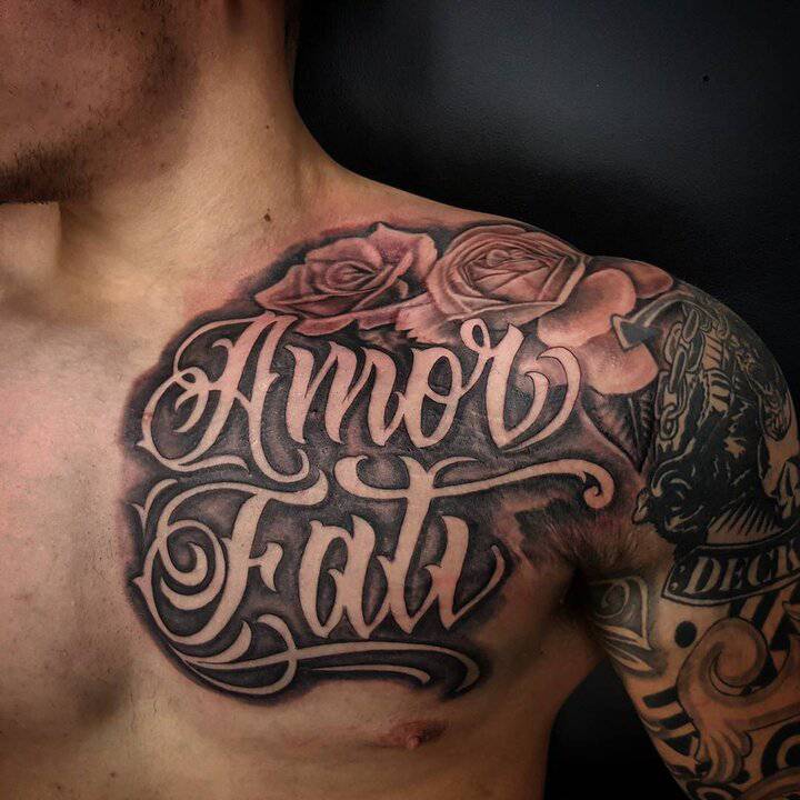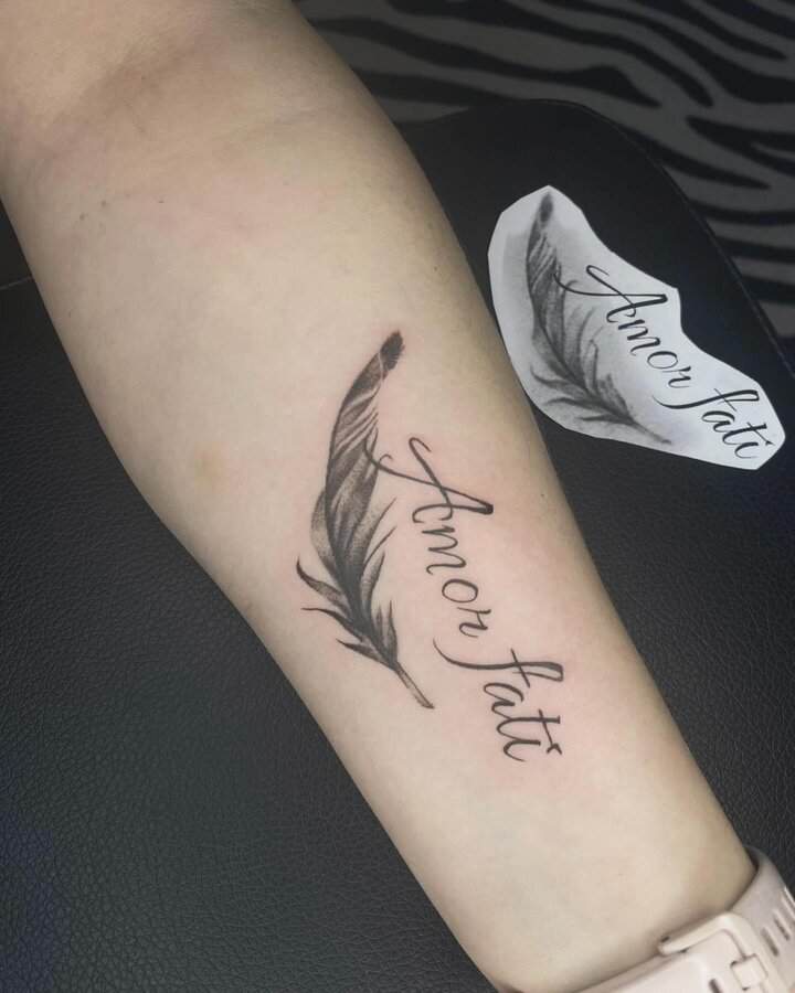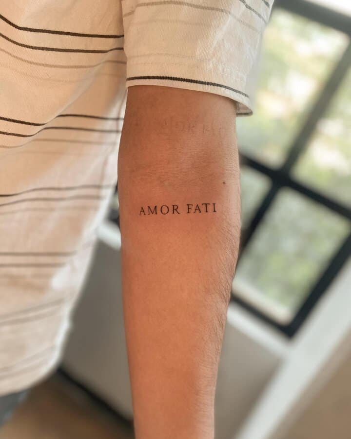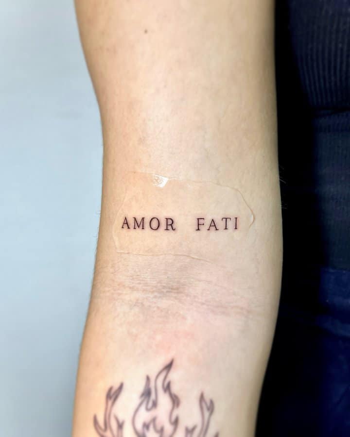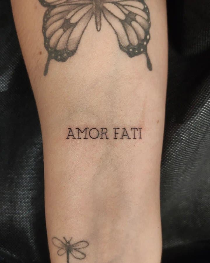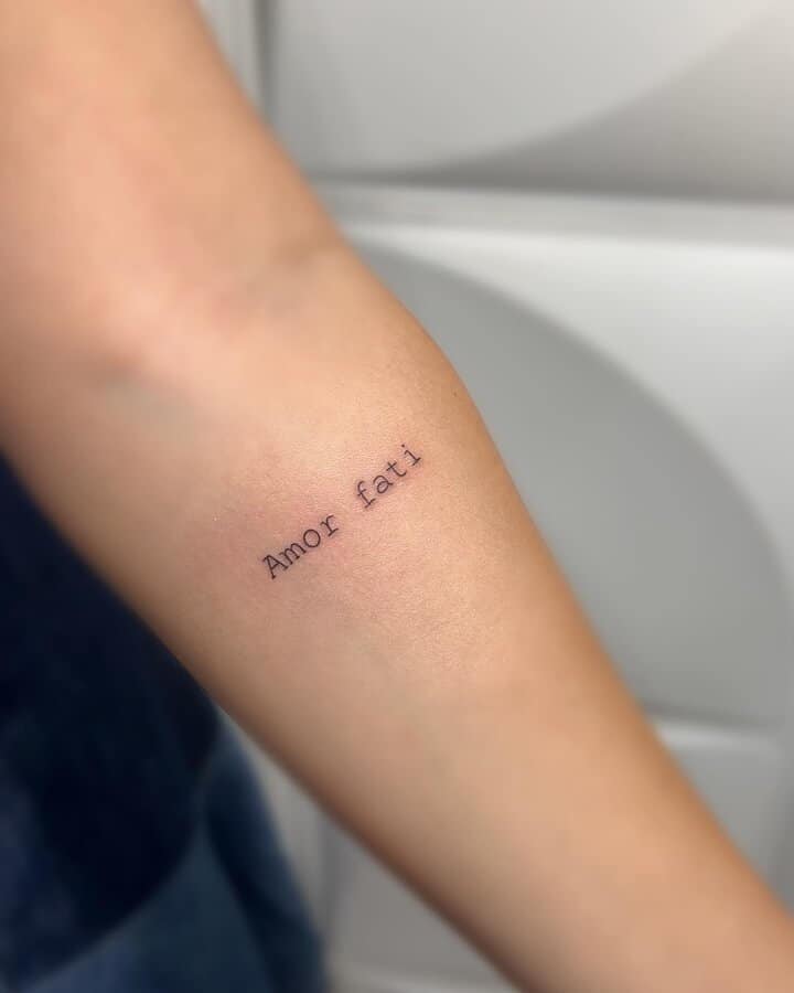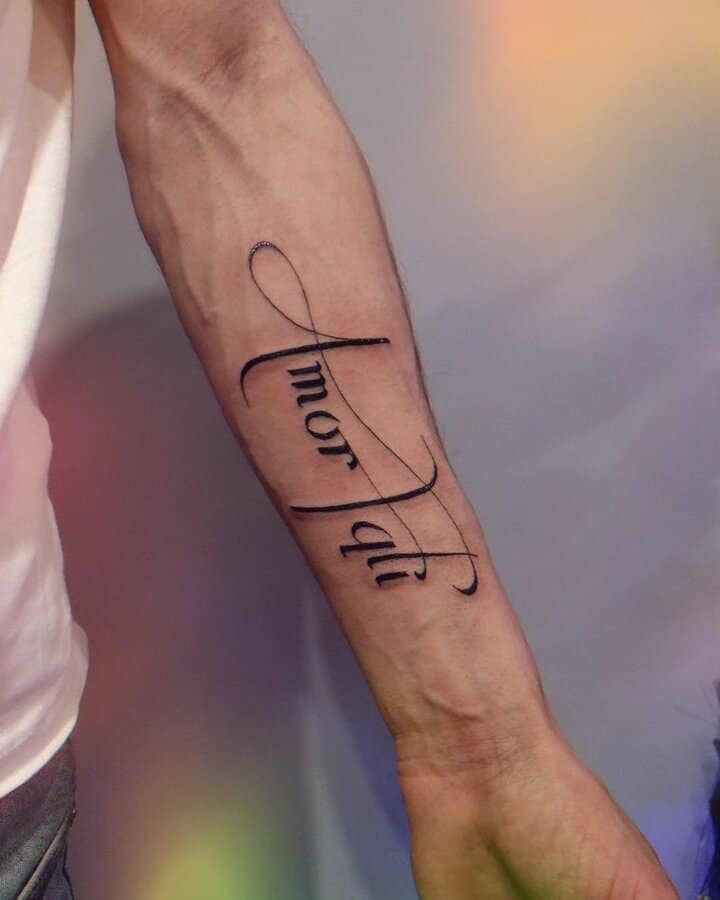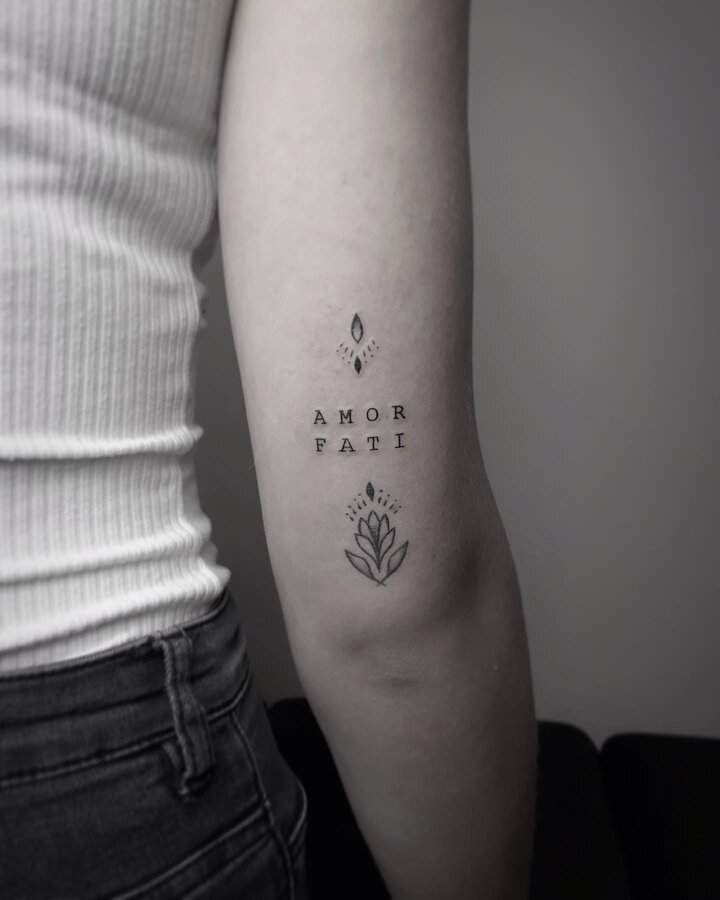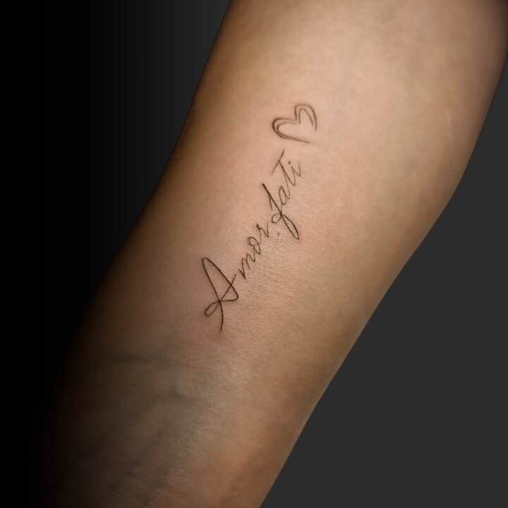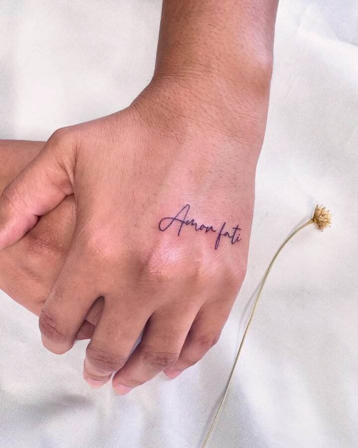 Посмотрите галерею с фотопримерами надписи amor fati тату