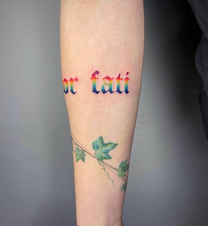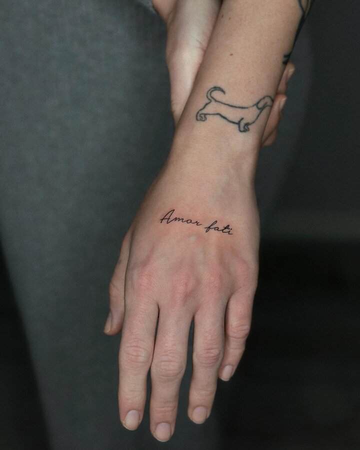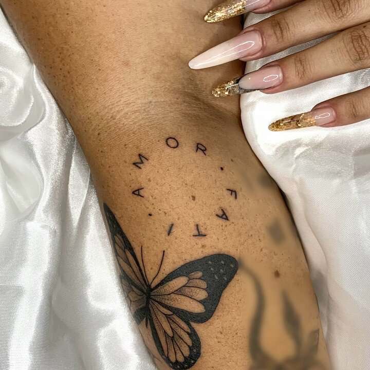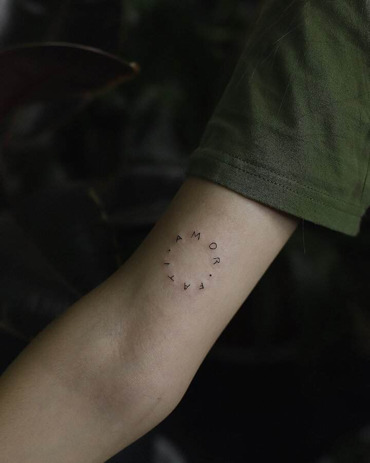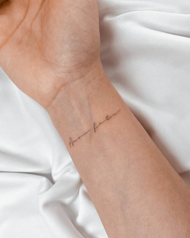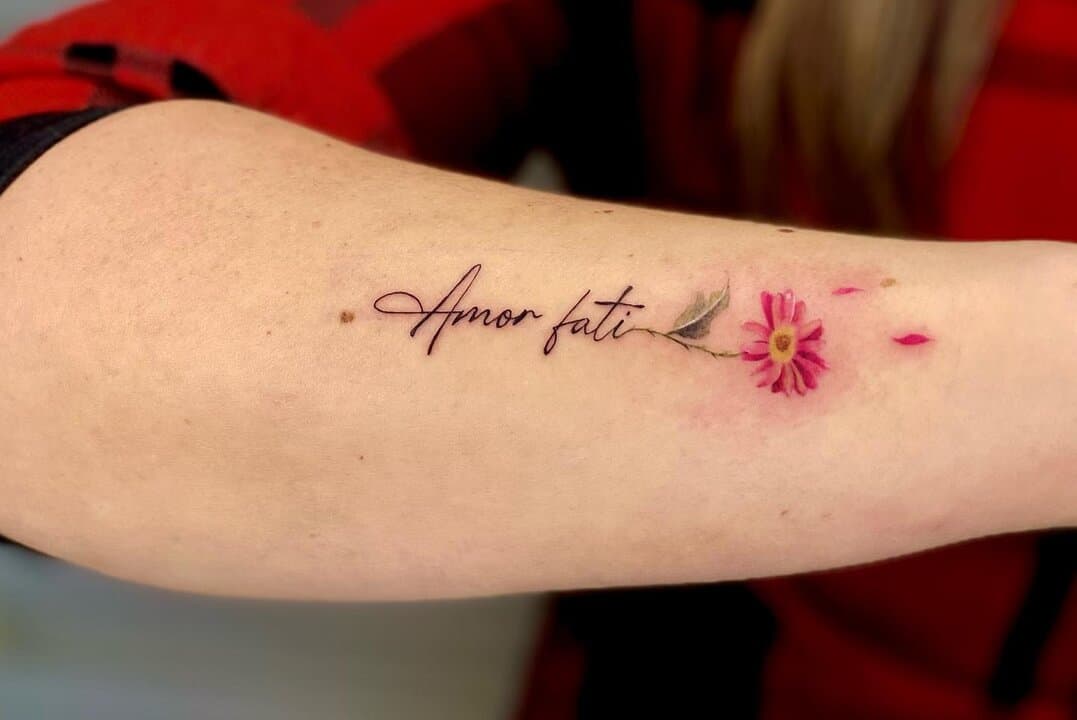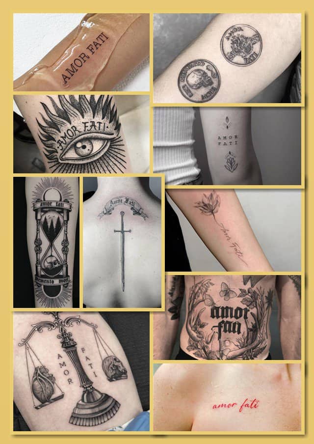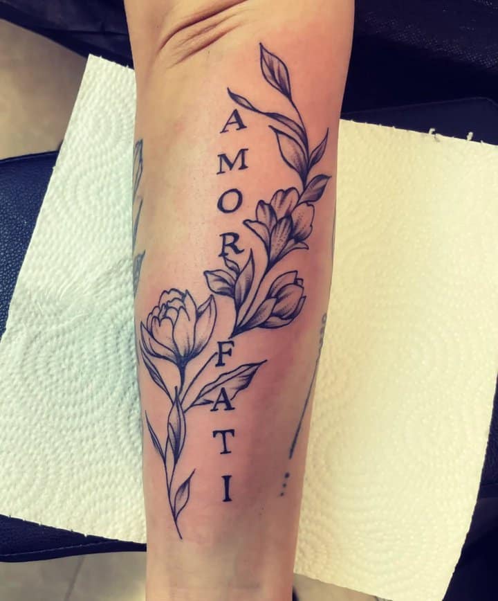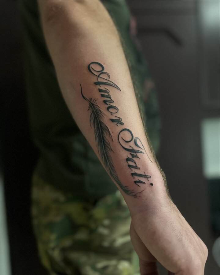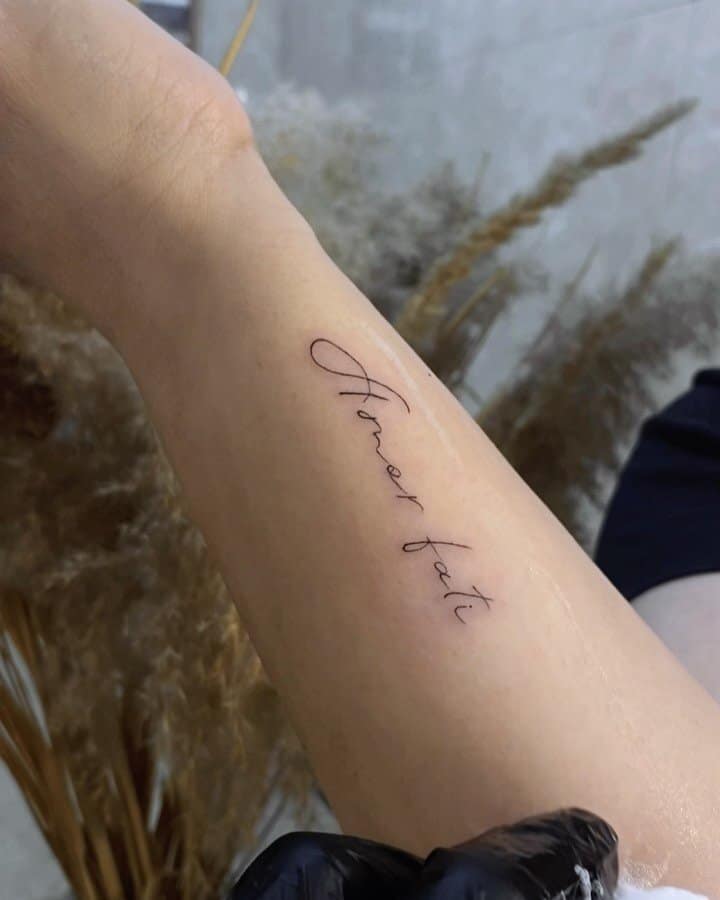 Посмотрите галерею с фотопримерами надписи amor fati тату