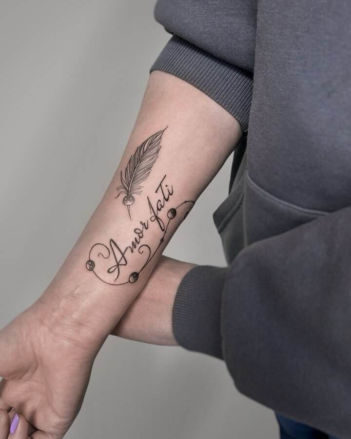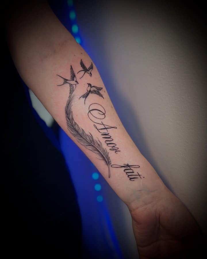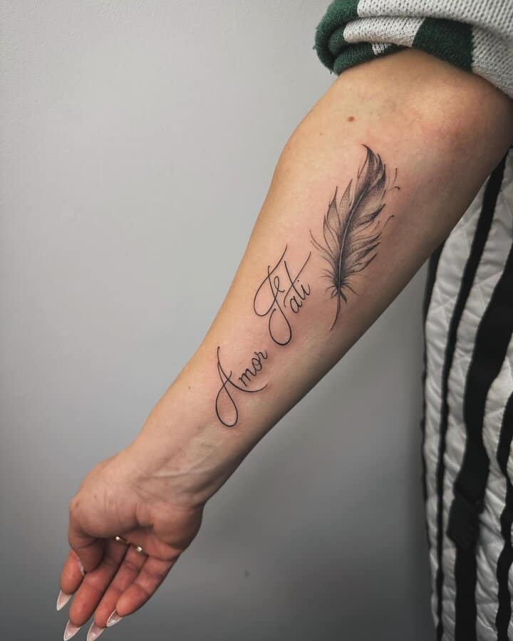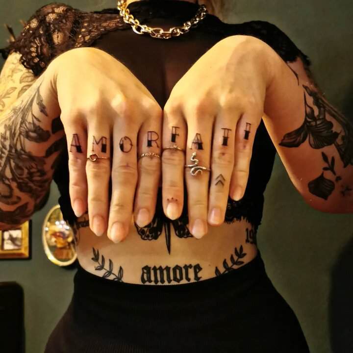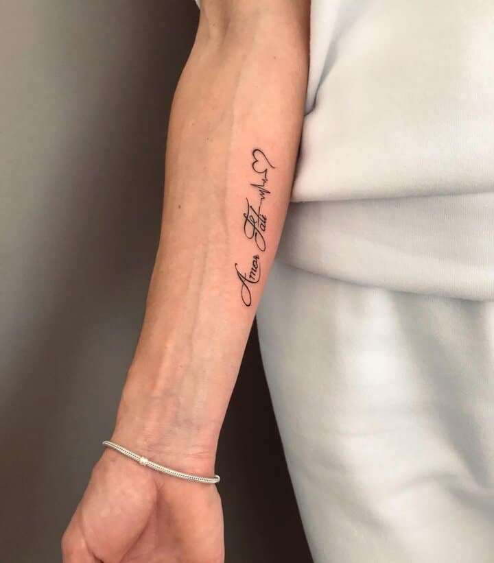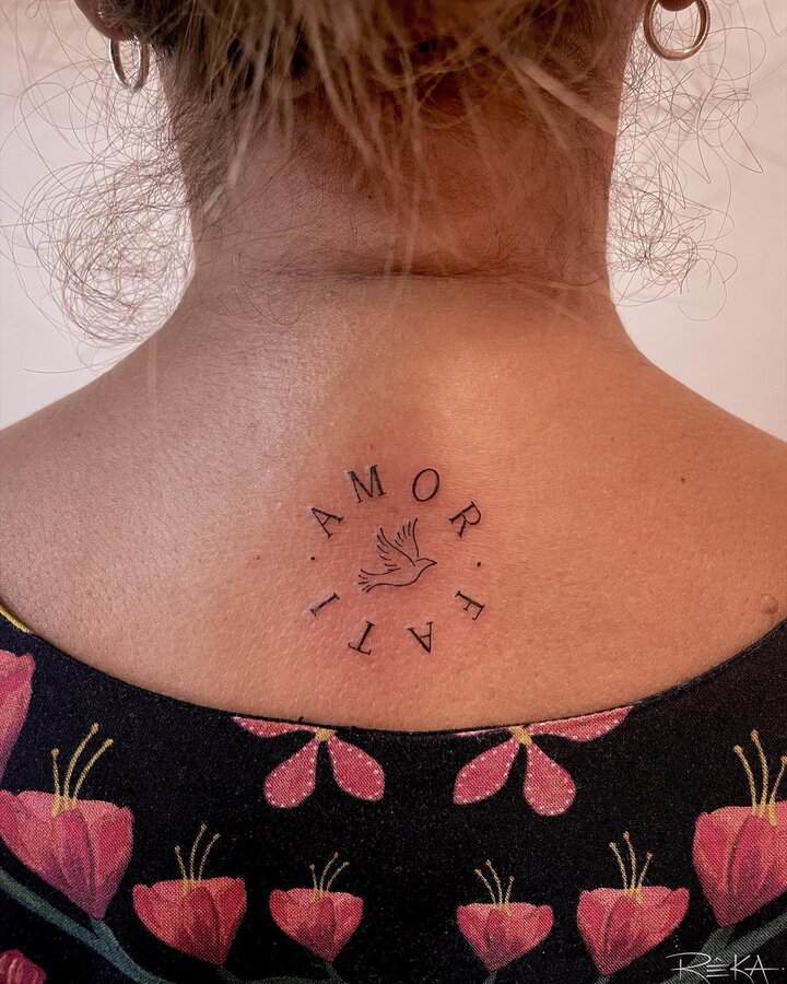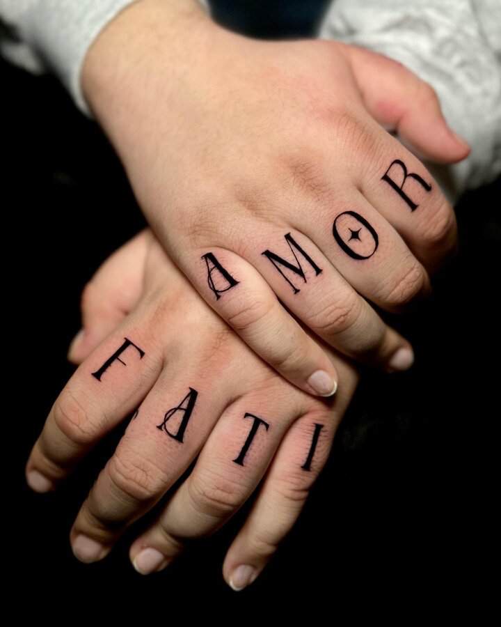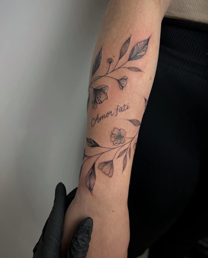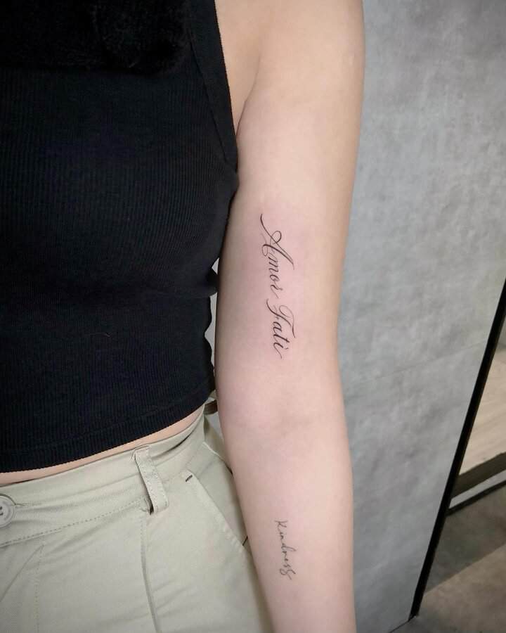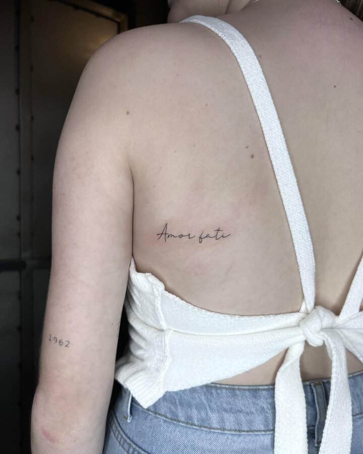 Посмотрите галерею с фотопримерами надписи amor fati тату