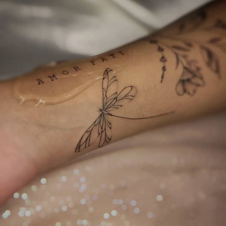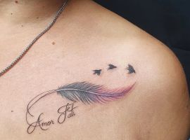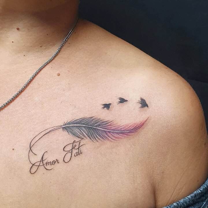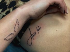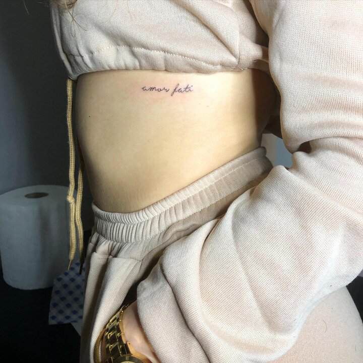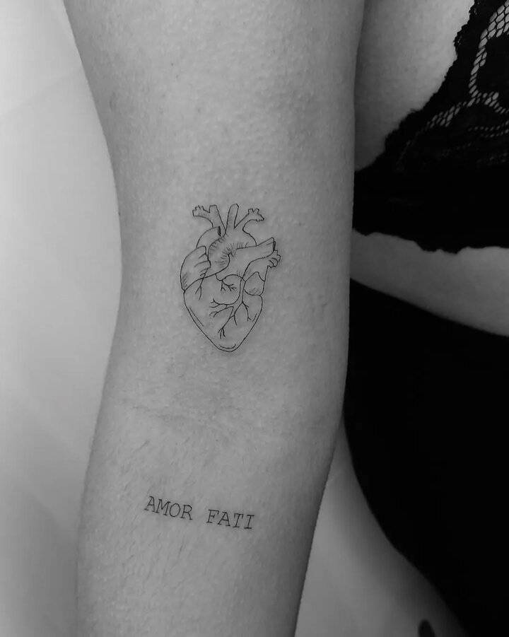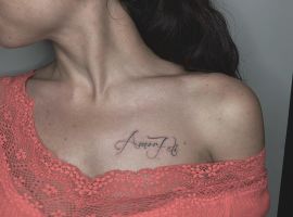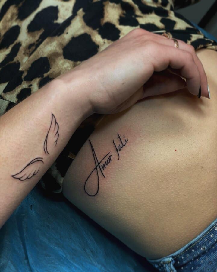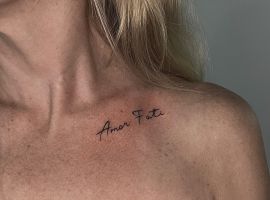 Выбирая место, думайте о стиле жизни: активные люди ставят на предплечье, любители секретов – на рёбра. Амор фаті на ключице часто делают тонкими линиями, чтобы не отвлекать от формы тела.