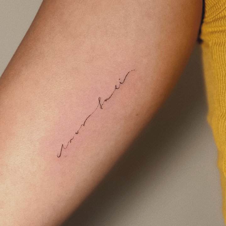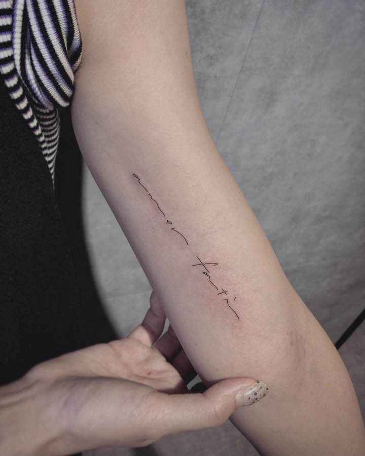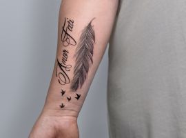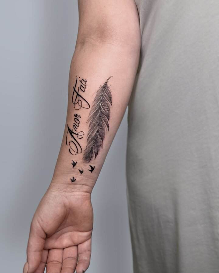 - Предплечье – идеально для длинной надписи, видно в рубашке с коротким рукавом, напоминает о философии во время работы.