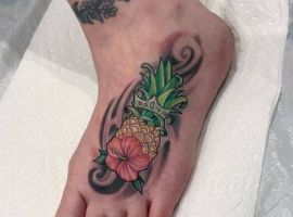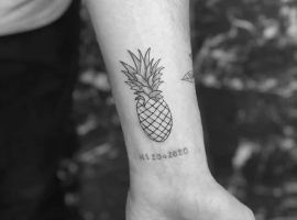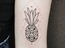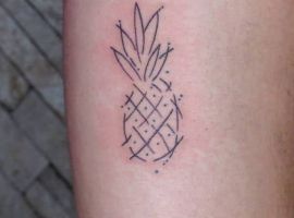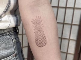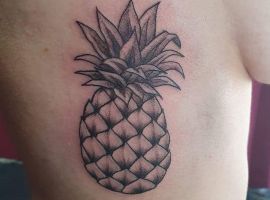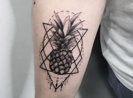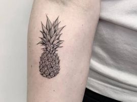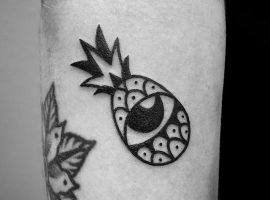 В татуировках ананас чаще делают в ярких цветах, однако и в черно-белом варианте он узнаваем и смотрится очень стильно. Благодаря уникальному виду, его трудно с чем-то спутать и потому можно набивать на коже как в большом объеме, так и в виде маленького символа. Подойдет для такой идеи любой участок кожи: от шеи до щиколотки. Главное – найти хорошего мастера и удачный эскиз. Для этого обратитесь в салон Альянс в Киеве.