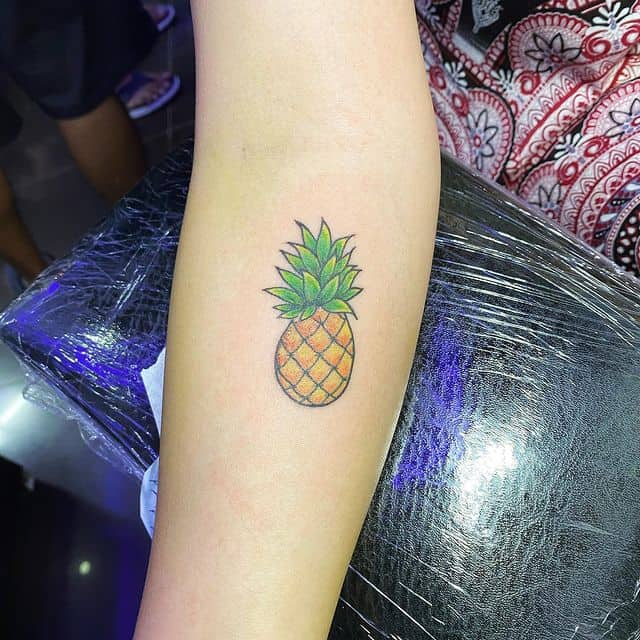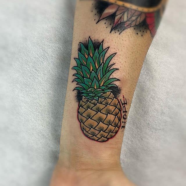 Значение татуировки ананас сложно понять на первый взгляд, ведь действительно не понятно, что может означать этот фрукт. Первое, что приходит в голову, это что владелец такого нательного рисунка просто очень любит ананасы, их вкус для него олицетворяет сам вкус жизни. Но сам символ гораздо шире и имеет древнее значение. Многие народы считают именно ананас символом дружбы и гостеприимства. Это объясняется тем, что существует традиция, когда идешь в гости приносить с собой именно ананас, в знак дружбы и хорошего расположения. В свое время, в Европу ананасы привез сам Христофор Колумб, которого поразило, как радушные жители Северной Америки встречали путешественников самым дорогим и ценным, что имели – именно этим фруктом. Такой обычай можно сравнить с нашим встречанием дорогих гостей «хлебом с солью». Так же и название ананас дословно переводится как «драгоценный фрукт».