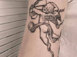 Когда мужчина выбирает в качестве тату Купидона на руке – это явно указывает на его романтичную натуру. Для сильного пола такой выбор может означать следующее: