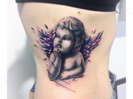 Несмотря на то, что роль Херувима (посланника Бога) заключается в охране и защите, большинство татуировок с изображением ангелочка означает невинность. В Библии никогда не упоминалось об ангелах, которые напоминают маленьких пухлых малышей. Подобная концепция Херувима в образе ребенка взяла начало из средневековых картин, скульптурных композиций. Купидон в переводе с латинского – вожделение, страсть. Амур в отличие от Купидона подчиняет человека не физическому желанию, а романтическому увлечению.