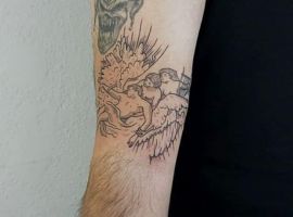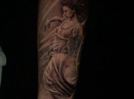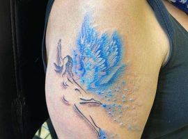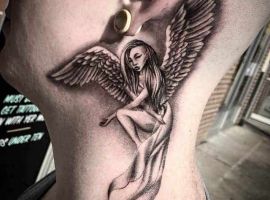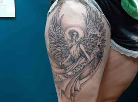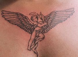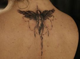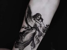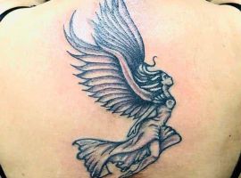 Ангел в полете, который расправил свои крылья может быть образом перерождения, освобождения от чего-то или кого-то в прошлом. Такие татуировки часто набивают в память о пройденном этапе в жизни, к которому не хочется возвращаться или который стал толчком к новой лучшей жизни.