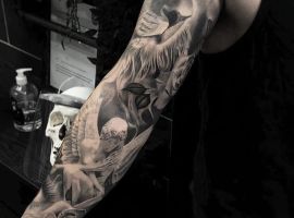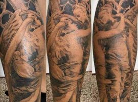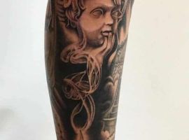 Для таких эскизов самыми популярными стилями можно считать чикано, треш полька, реализм, олд скул. Предпочтение отдается черно-белым татуировкам с ангелами, хотя и в цвете смотрится не менее интересно. Необычное исполнение может быть в акварели, графике, геометрии. Рисунок может состоять как из силуэта, линий, контура ангела, так и реалистичная фигура. Мастер салона Альянс в Киеве создаст для Вас персональный эскиз.