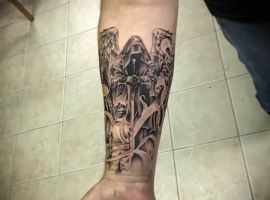 Михаил, Гавриил, Рафаил, Иегудиил, Селафиил, Уриил, Варахиил, Иеремиил – вот имена высших ангелов, сохранившиеся в Священном Предании. Святой Михаил – самый главный из них, считается предводителем небесного войска. Тату Архангел является мощным оберегом, побуждает человека стремиться к чистоте помыслов.