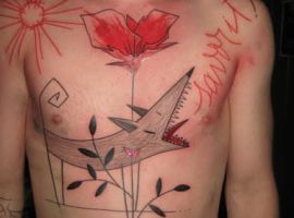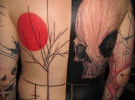 К тому же, очень интересно, что в большинстве случаев татуировку бьют сразу на тело, без предварительного нанесения эскиза на тело. Немного не обычно и не понятно вообще, как такое возможно, но в основном конечный результат и вид своей татуировки человек может увидеть уже после окончания сеанса, когда ничего нельзя изменить или подправить. Клиент выбирает идею и направление, цветовую гамму – все остальное на усмотрение тату-мастера. Очевидно, нужно сильно доверять мастеру или быть слишком авантюрным, чтобы согласиться на такой эксперимент!)