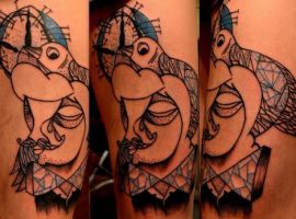 - Особенности изображения зависят от профессионализма мастера. Самое главное для создания тату в стиле арт-брют – выбрать художника. Стоит такая работа дорого, так как является авторской и неповторимой.