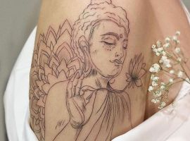 Среди девушек большой популярностью пользуется лайнворк. Эта техника предполагает создание рисунка с помощью линий. Не менее распространены работы, выполненные одной непрерывной линией. В таких техниках изображают цветы, мандалы, легкие рисунки животных. Тату наносится на руку, бедра, под грудью.