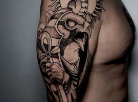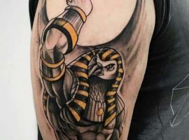 Чаще татуировку с этим древним божеством выбирают именно мужчины. Этот символ означает мужественность, силу. И, конечно, речь тут идет не только о физических аспектах, но и о духовных. Возможно, тату станет отличным вариантом для человека, который хотел бы прийти к власти, который хотел бы добиться успехов своей эрудицией и умом. В таком случае упор больше делается на выражение «сущности фараона». В то же время татуировка Ра в образе сокола указывает на стремительность, активность, желание добиваться самых сложных и неосуществимых целей.