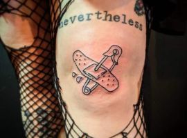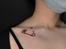 Однако, чаще всего булавку как татуировку наносят на предплечье или запястье, изображая таким образом, чтоб казалось будто она протыкает кожу. Здесь, при желании, тату можно и скрыть под одеждой, и показать, надев что-то с коротким рукавом. Также в случае женского варианта тату, очень изящно смотрится булавочка на ключице. Кстати, эта идея очень универсальна, так как подойдет и мужчине, и девушке, любых возрастов и социальных статусов. Она может быть как отдельным образом, так и элементом большой тату-композиции.