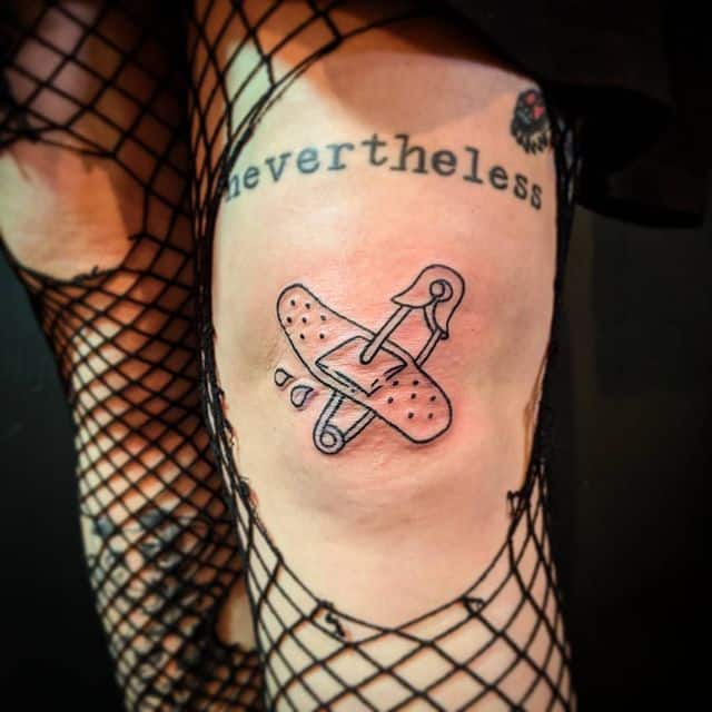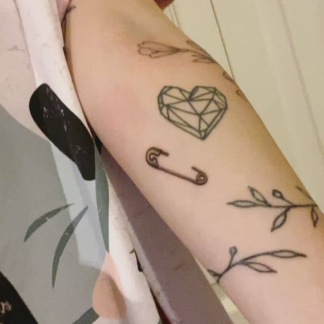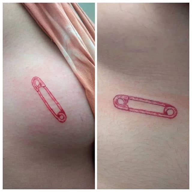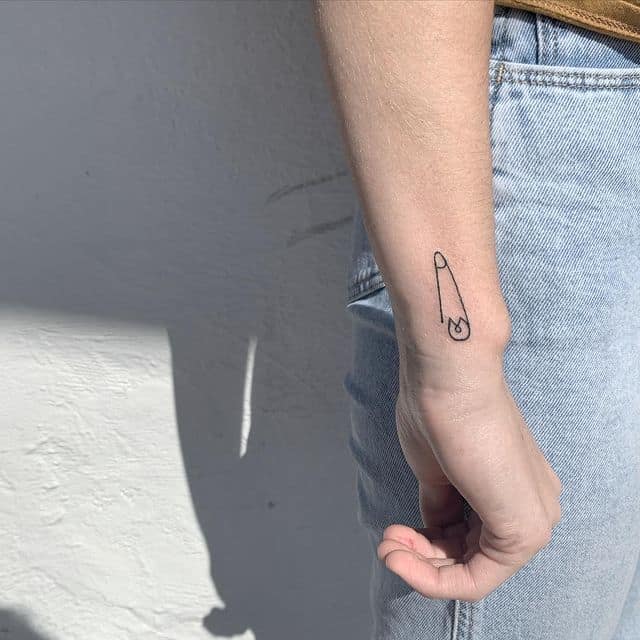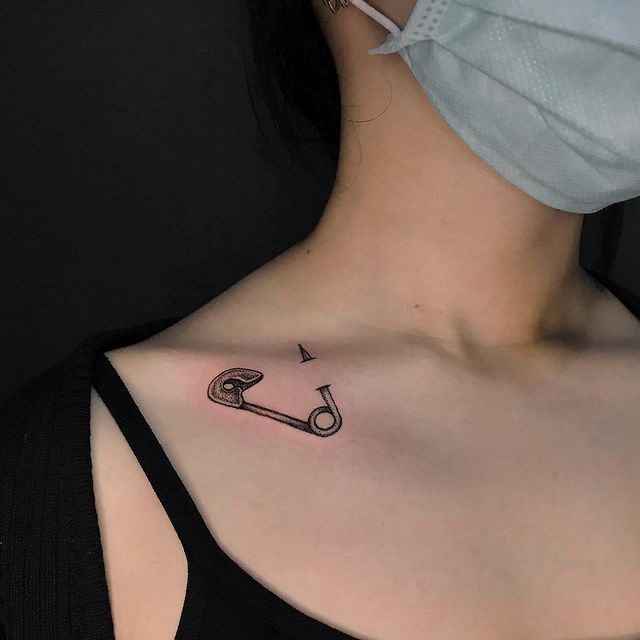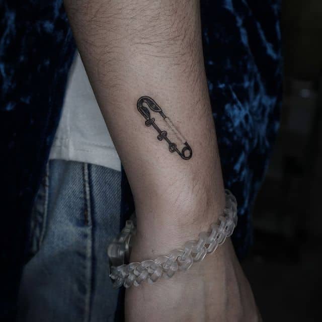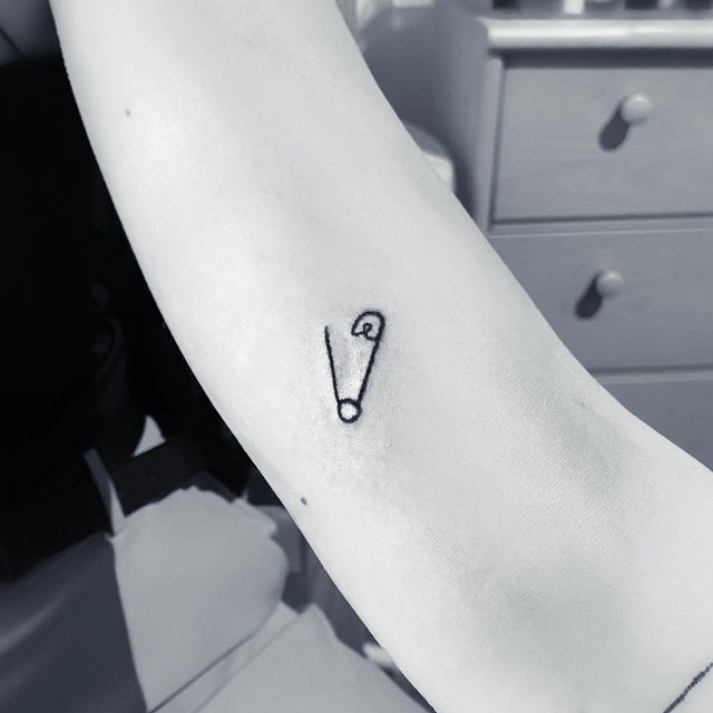 Однако, чаще всего булавку как татуировку наносят на предплечье или запястье, изображая таким образом, чтоб казалось будто она протыкает кожу. Здесь, при желании, тату можно и скрыть под одеждой, и показать, надев что-то с коротким рукавом. Также в случае женского варианта тату, очень изящно смотрится булавочка на ключице. Кстати, эта идея очень универсальна, так как подойдет и мужчине, и девушке, любых возрастов и социальных статусов. Она может быть как отдельным образом, так и элементом большой тату-композиции.