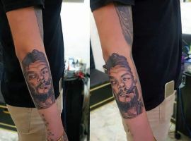 Любые портреты отлично смотрятся в технике реализм. Эффективный и необычный рисунок стопроцентно привлечет внимание и заставит прохожих задуматься о ваших высоких идеалах и устремлениях. Но не менее интересно смотрится изображение и в стилях нью скул, треш полька или в «плакатном» (векторном) стиле, где видны только очертания черного цвета. Особенных предпочтений касаемо места нанесения нет. Но чаще всего выбирают зону плеча, спины, груди, предплечья.