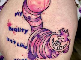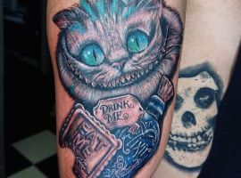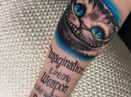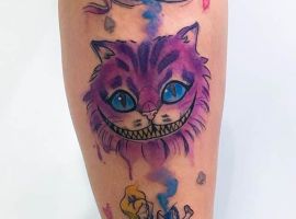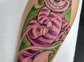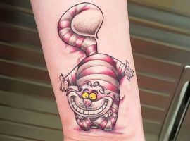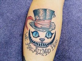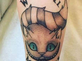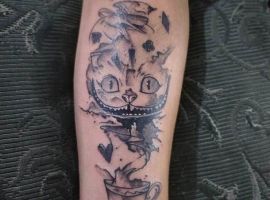 Особую популярность татуировка в виде Чеширского кота приобрела после выхода в прокат фильма «Алиса в стране чудес». Персонаж с широкой улыбкой является творением талантливого автора Льюиса Кэрролла. Интересно отметить, что изначально кота не было в книге. Автор внес изменения в сюжет только в 1865 году. Сегодня выделяют 2 гипотезы происхождения данного героя: