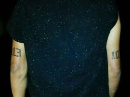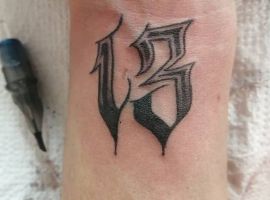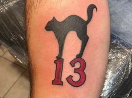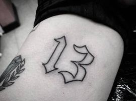 Тату с числом 13 может иметь разнообразные толкования, зависимо от того, с какими дополнительными элементами оно нанесено. Данный символ породил множество суеверий, нажил себе плохую репутацию, однако тату с ним зачастую набивают, чтобы показать пренебрежение к приметам, заявить, что судьба человека зависит исключительно от него самого.