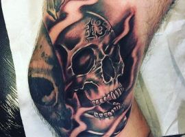 Бесстрашные, с предубеждениями относящиеся к приметам, циники дополняют татуировки со злополучным числом, наводящими страх изображениями черепа и костей. Цифры нередко наносятся готическим шрифтом, их изображение дополняется цветными элементами. Такое тату на открытых участках тела (шее, кистях, ладонях) свидетельствует о категоричном и напористом характере своего хозяина. Такие люди не любят, когда ими командуют или навязывают свои идеалы, для них проще идти наперекор системе, чем следовать чьим-то правилам, считаться с мнением общественности.