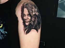 Часто эскиз выполняется в виде портрета конкретного человека, например, супруги или матери. Татуировка известной женщины и ее толкование определяется в зависимости от личности знаменитости. Нанесение изображения, как правило, демонстрирует восхищение талантом или внешностью девушки. Тату близкого человека делают, чтобы показать уважение и любовь. Этот рисунок на коже предоставляет владельцу шанс мысленно быть ближе к объекту своего обожания.