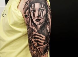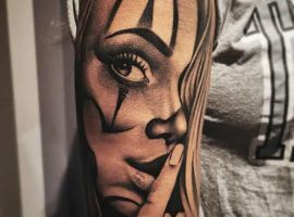 Изображение девушки имеет много смыслов, порой, бывает сложно разобраться, что означает татуировка, т.к. на толкование изображения влияет каждая деталь. Поэтому, чтобы добиться желаемого результата, необходимо обращаться к квалифицированным мастерам салона Альянс в Киеве, и проговаривать с ними все детали эскиза, начиная от предметов на рисунке, заканчивая его расположением на теле.