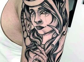 Татуировки в стиле фэнтези представляют собой сказочные рисунки. Тут представлены различные сверхъестественные существа, параллельные миры, вымышленные персонажи… Особенную атмосферу таких рисунков очень сложно не заметить. При этом сложного и глубокого философского смысла тут нет. Эстетическая красота – вот главная особенность таких тату. Если и вы хотите получить такой рисунок, то обращайтесь в тату салон Альянс.