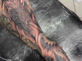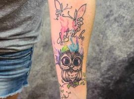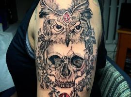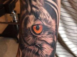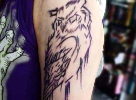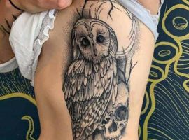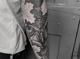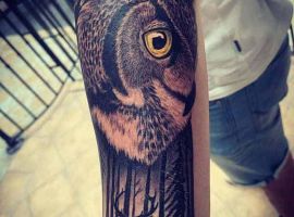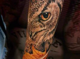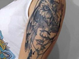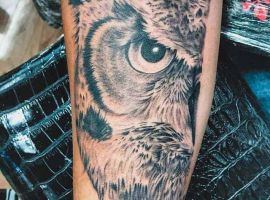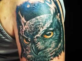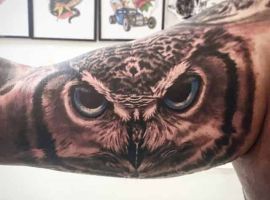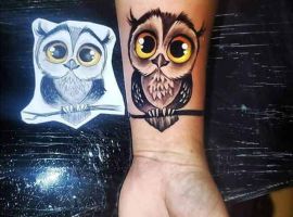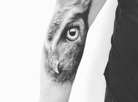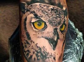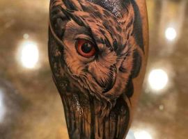 С помощью техники с яркими и узнаваемыми образами можно на более скромных площадях тела удачно разместить голову птицы, глаза или крылья. Изображения филина отлично сочетаются с магическими знаками и с лесными пейзажами, что позволяет любителям при желании дополнить татуировку новыми элементами. Опытные мастера салона Альянс в Киеве смогут создать уникальный эскиз по Вашим пожеланиям.