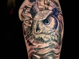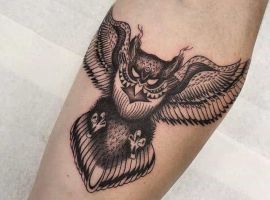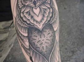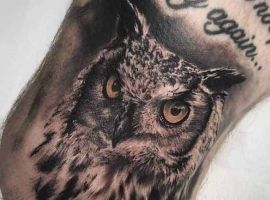 Филин – это царь ночных птиц и оспорить его статус не может больше ни одно летающее в темноте создание. Тату филин однозначно интригует искать разгадки в значении изображения могучего повелителя ночи.