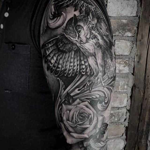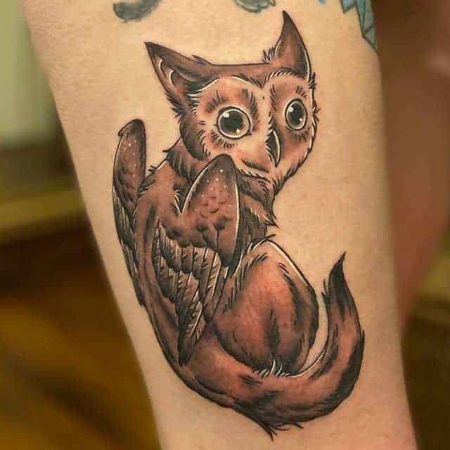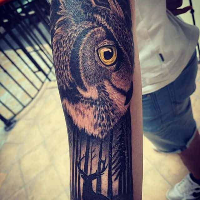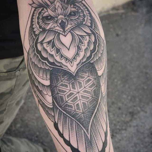 Филин – это царь ночных птиц и оспорить его статус не может больше ни одно летающее в темноте создание. Тату филин однозначно интригует искать разгадки в значении изображения могучего повелителя ночи.