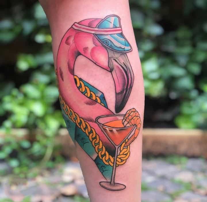 Это красивое пернатое привлекает внимание своим броским внешним видом. Уникальный розовый окрас, длинные ножки и длинная шея выглядят очень грациозно и утонченно. Так что именно благодаря эстетичности внешнего вида фламинго и выбирают в качестве идеи для татуировки.
