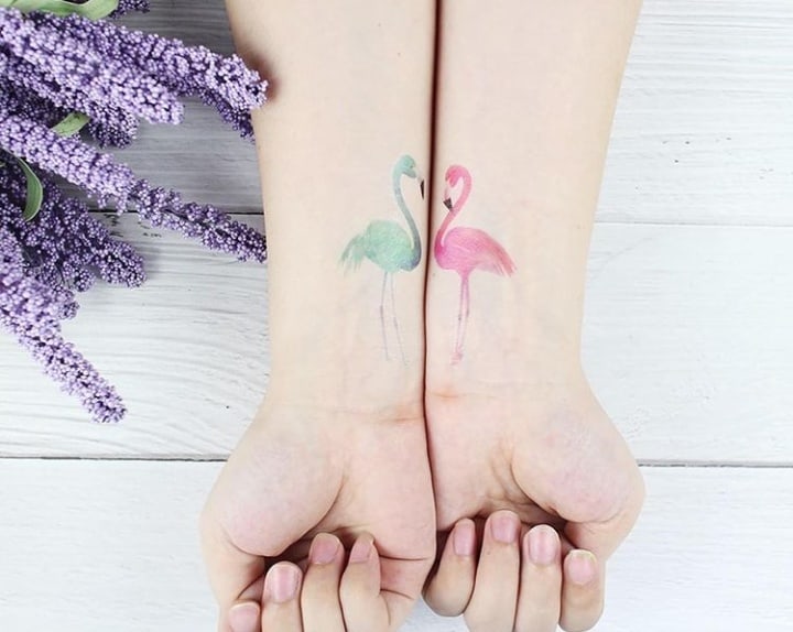 Известно, что фламинго – очень дружелюбны и живут стаями. Потому, если в татуировке изобразить несколько птиц вместе, то это будет символом или дружбы, или семьи. Все зависит от желания владельца тату.