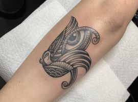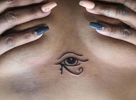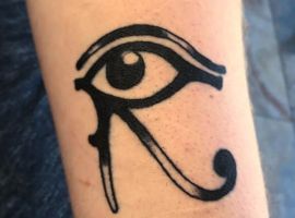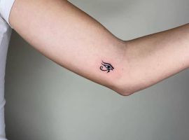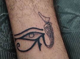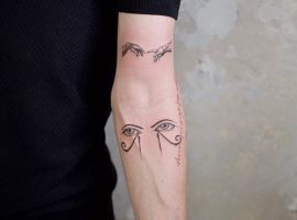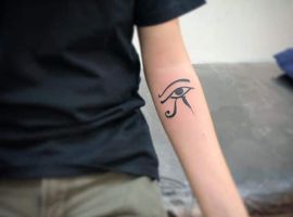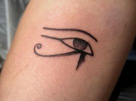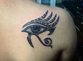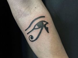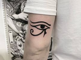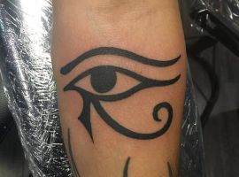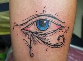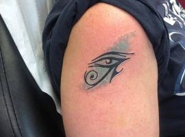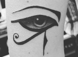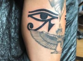 Таким образом, Глаз Гора, также называемый Уаджет, – египетский символ, связанный с богом Солнца, несущий защитную энергию. Он стал известным как символ защиты, власти и исцеления. Вскоре этот символ стал обычным и его можно увидеть среди артефактов и в гробницах с мумиями, а также в виде ювелирных украшений. Эскиз тату выглядит как глаз, дополненный внизу спиралевидно изгибающейся линией.