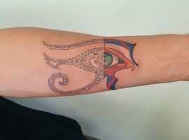 Сегодня око Ра очень популярно как татуировка. Многие выбирают подобные татуировки из-за их символики или эстетики. Считается, что татуировка в виде глаза Гора защищает от злых духов. Но у этой татуировки есть ещё одно менее известное значение. Это – символ борьбы между двумя братьями за правду и власть. Закажите эскиз у мастеров салона Альянс в Киеве.
