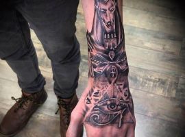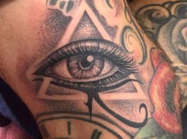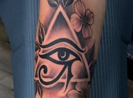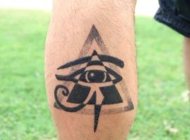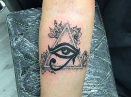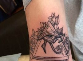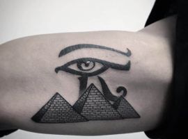 Распространена татуировка с глазом внутри пирамиды, она означает саморазвитие, стремление к духовности, усиление интуиции и проницательности. Однако она может ассоциироваться не только с Египтом, но и масонами, их всевидящим оком.