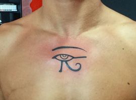 Делать татуировку Глаз Гора можно на любой части тела. Для небольшого эскиза подойдут запястье, палец, кисть, лодыжка, затылок. Крупную татуировку можно сделать на груди, плече, пояснице. Желательно выбрать верхнюю часть тела, поскольку египетский символ несет большой поток светлой энергии.
