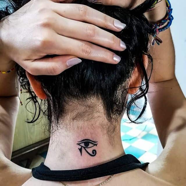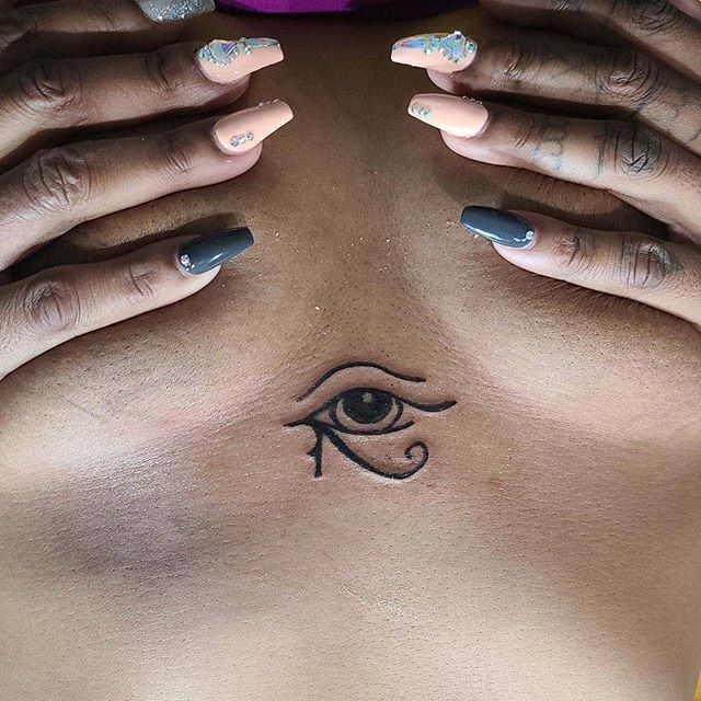 Делать татуировку Глаз Гора можно на любой части тела. Для небольшого эскиза подойдут запястье, палец, кисть, лодыжка, затылок. Крупную татуировку можно сделать на груди, плече, пояснице. Желательно выбрать верхнюю часть тела, поскольку египетский символ несет большой поток светлой энергии.