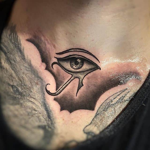 Глаз Гора должен соответствовать стороне расположения на теле: правый справа, левый слева. Уаджет с левой стороны выполняет функцию оберега от негативной энергии, а с правой – помогает в делах. Тату на спине на позвоночной линии защищает от предательства, а на груди возле сердца – от приворота.