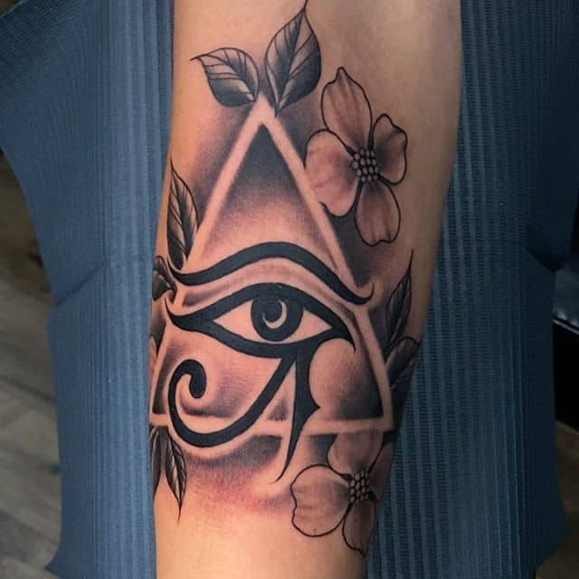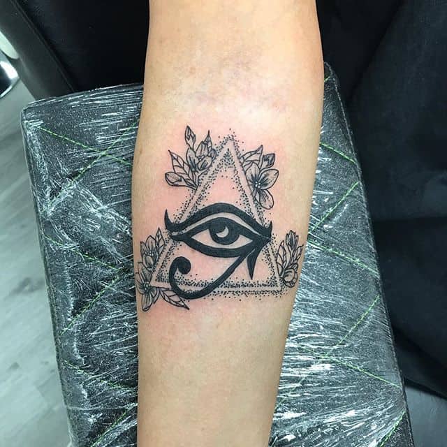 Распространена татуировка с глазом внутри пирамиды, она означает саморазвитие, стремление к духовности, усиление интуиции и проницательности. Однако она может ассоциироваться не только с Египтом, но и масонами, их всевидящим оком.