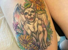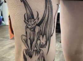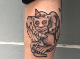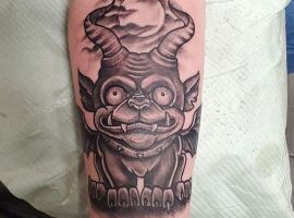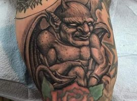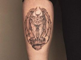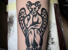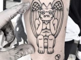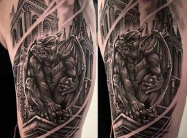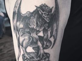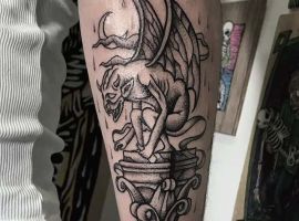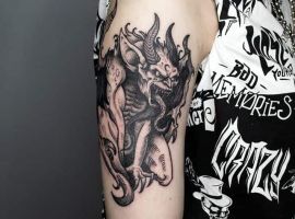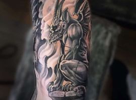 Татуировка с горгульей будет напоминанием жить по совести и принимать только правильные решения в своей жизни.