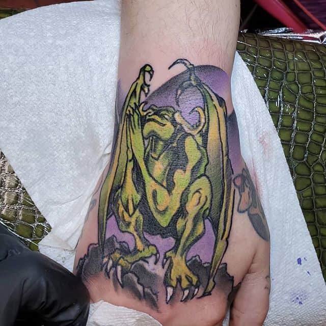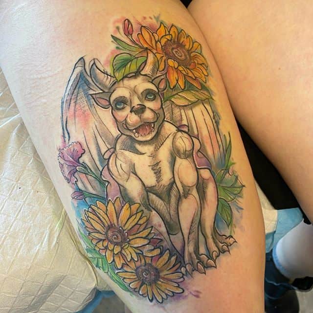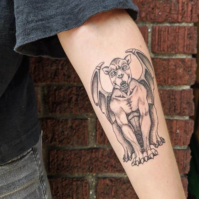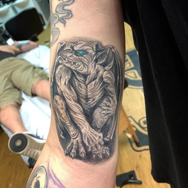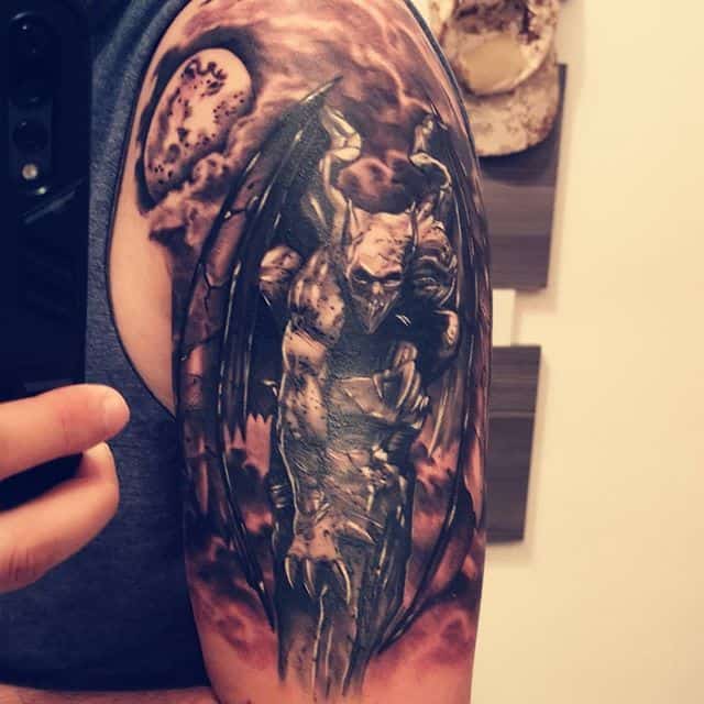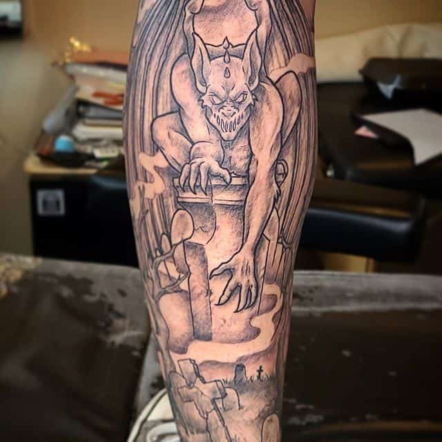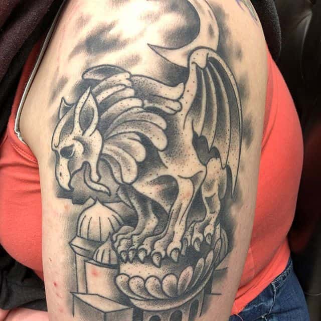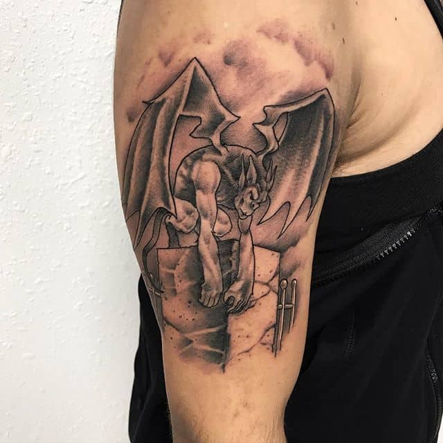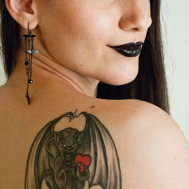 Татуировка с горгульей будет напоминанием жить по совести и принимать только правильные решения в своей жизни.