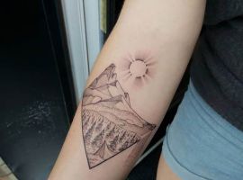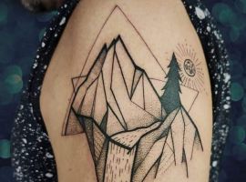 Тату горы геометрия – необычный стиль, который подойдет как для мужчин, так и для женщин. Рисунок в таком случае выполняется схематическим для тату горы. Геометрия смотрится элегантно и стильно.