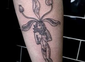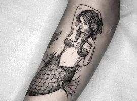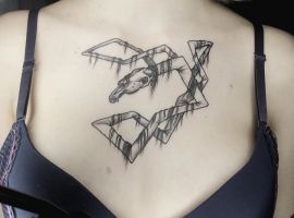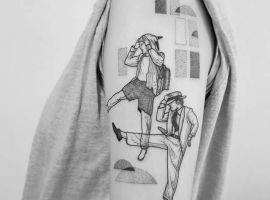 Татуировка в этом стиле похожа на эскиз, выполненный простым карандашом, чем-то напоминает олдскул и скетч. Рисунок получается изящным за счет тонких линий и в то же время строгим. Чтобы рисунок не получился чересчур мрачным, его разбавляют мелкими цветными элементами.